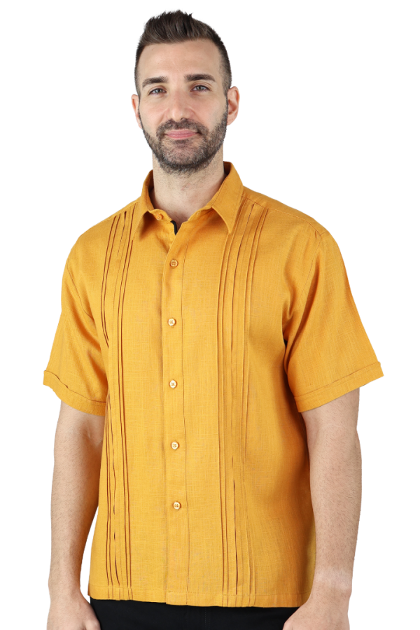 Descubre la elegancia atemporal de la Guayamisa Estilo Clásico con mangas cortas en un vibrante color mostaza. Diseñada para el hombre moderno, cuenta con detalles de alforza que añaden un toque distintivo a tu guardarropa. Ideal para cualquier ocasión, combina estilo y comodidad en una prenda esencial.