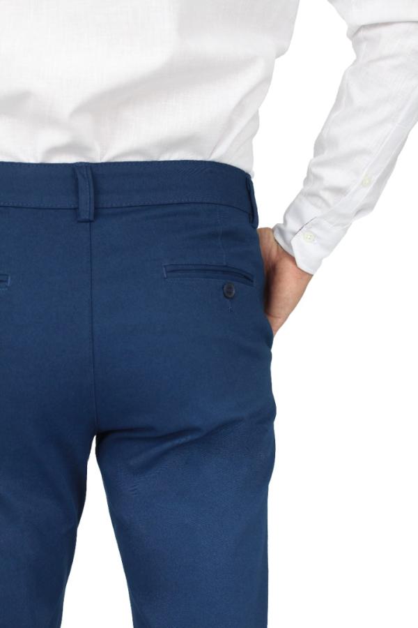 Pantalón De Vestir Stretch Color Azul Plúmbago Slim Fit Para Hombre